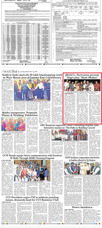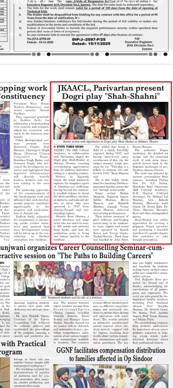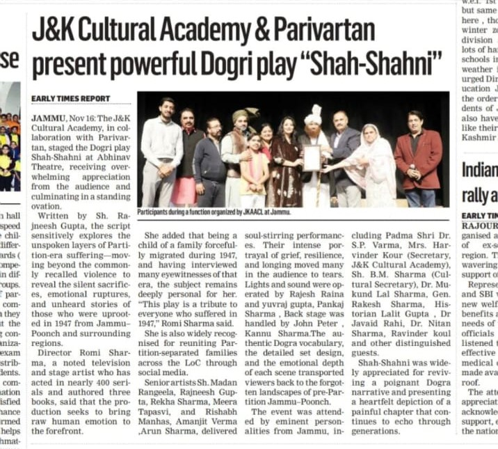 Media Coverage - Parivartan Stages Dogri Play “Shah–Shani” at J&K Cultural Academy’s Weekly Theatre Series