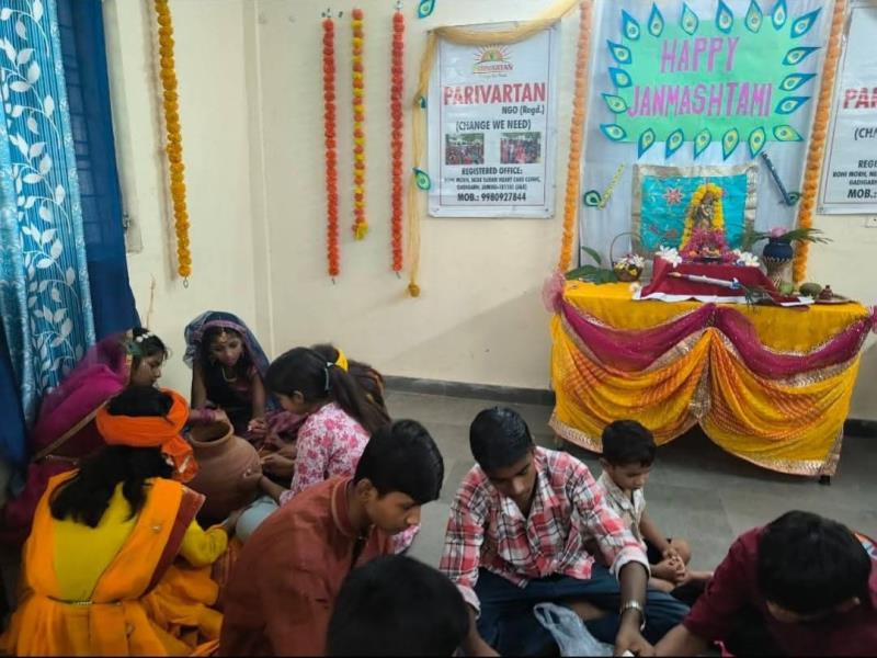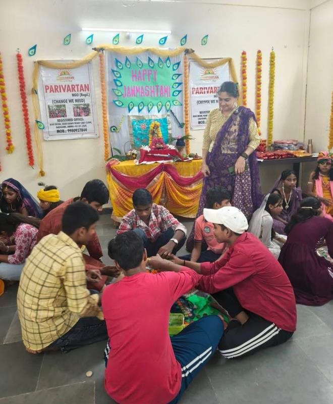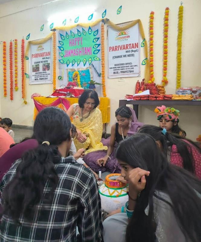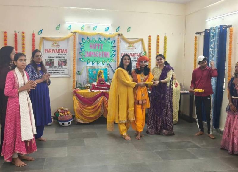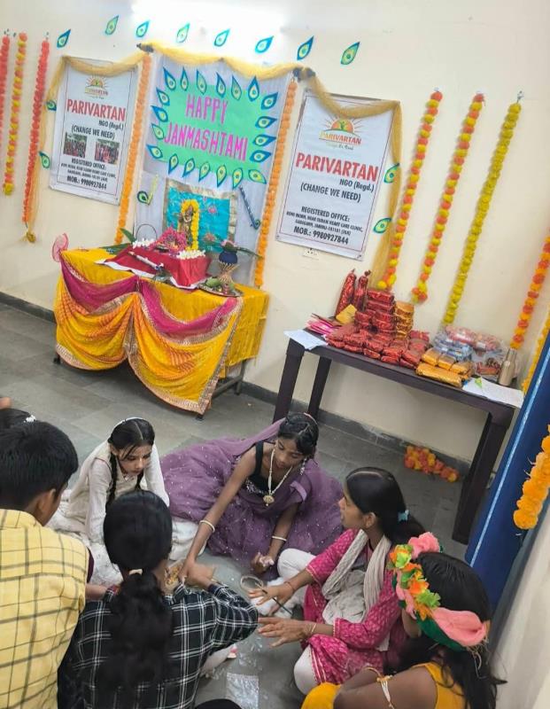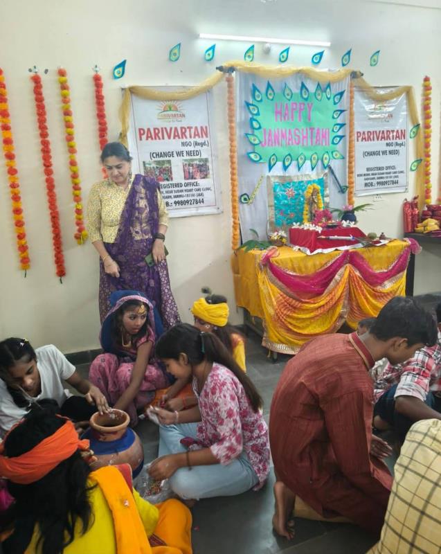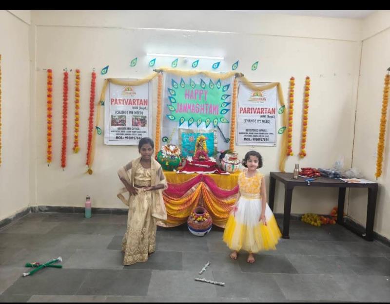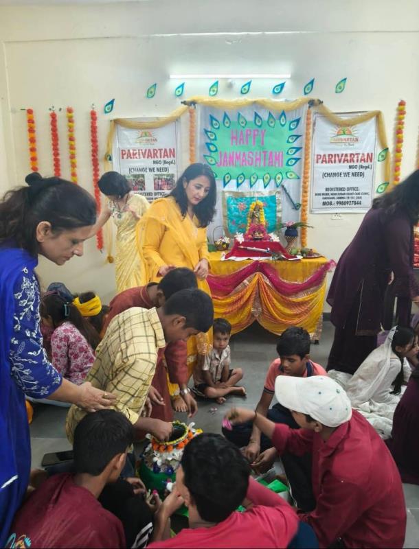 Parivartan, under the leadership of its President Romi Sharma, celebrated Janmashtami with joy and devotion among underprivileged children, creating a vibrant and festive atmosphere.